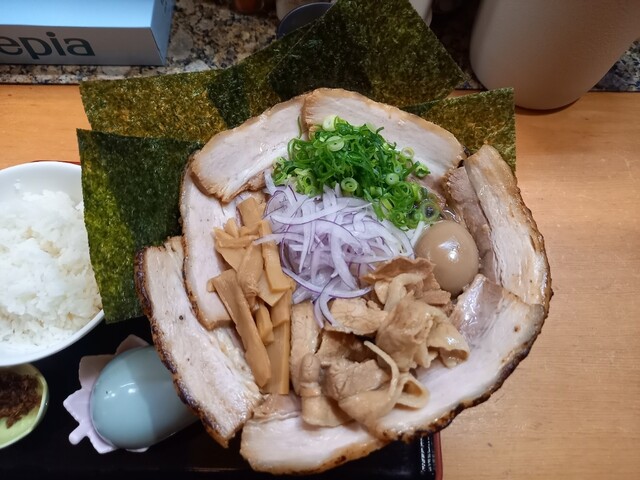いざの目の前に運ばれて来ると想像を越えたチャーシューの量。マジでヤバいと思いました。