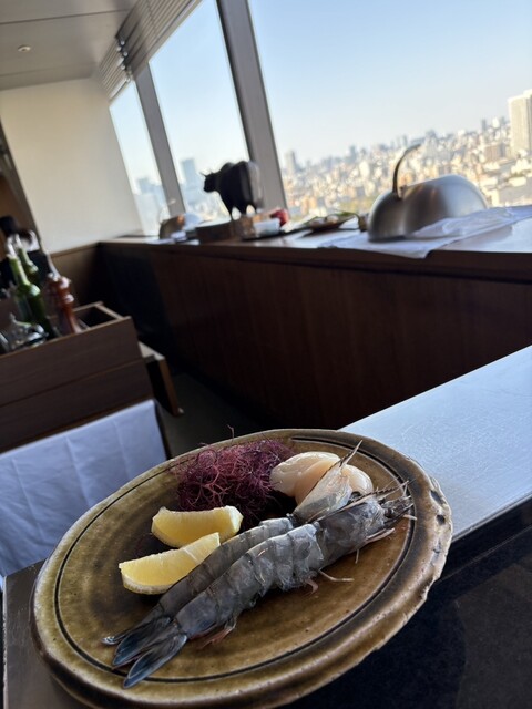 鉄板焼きは最初に食材を見れ、カウンターで目の前で焼いてくれるので楽しいです。