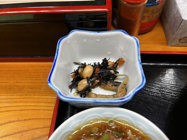 お揚げさん、にんじん、糸こんにゃく、ソイが入り混じり、ごま油効かすことで客を泣かせる◎