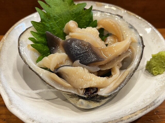 お通し(なめこおろし、筍煮)、刺身(インドマグロ、マダコ)