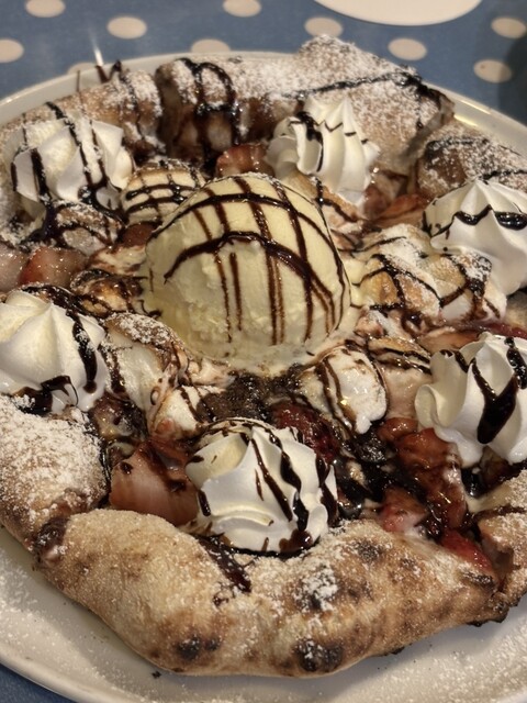 どれも美味しかったが、特に子羊の窯焼き(スペアリブのような感じ)とスウィーツピッツァ(季節限定の苺とチョコレート)は絶品❗️