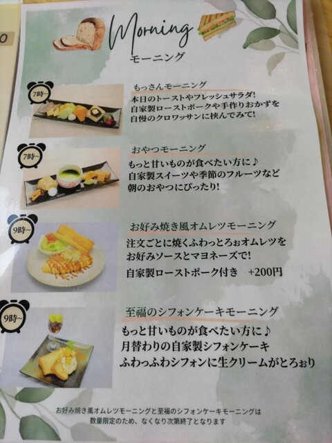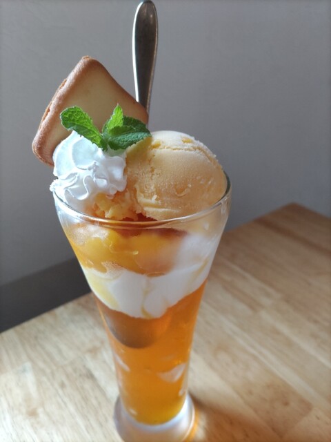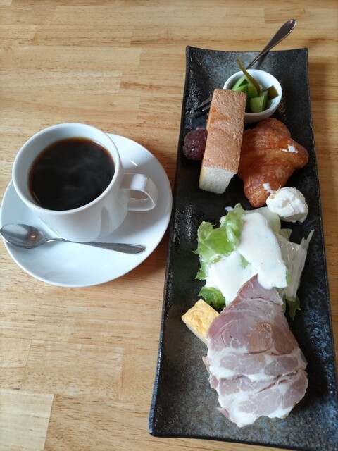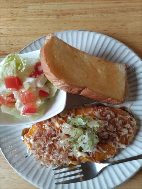 10時過ぎにお邪魔した。私はコーヒー、奥さんはマンゴーパフェ(期間限定モーニングセットあり)を注文。モーニングサービスがどちらにも付く。私はオムレツとトースト、奥さんは、クロワッサンとトースト、サラダ、ハムが付く。私のオムライスは中はトロフワ、かつお節とお好み焼きソースがかかった味つけだ。これがめちゃくちゃ美味い。次も迷わずこのモーニングだ。駐車場が少ないのとナビに住所を入力しても全然違う所を示し、たどり着けなかった。ナビが古いからだ。スマホで検索、ナビ案内したらたどり着いた。ホットした。奥さんがパフェのモーニングセットありをまた、やって欲しいと言っていた!