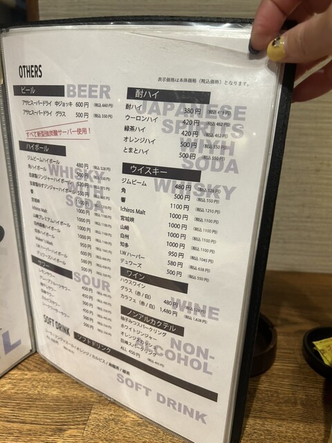 ドリンクは、生ビール2杯、トマトハイ、梅ジャムサワー、日本酒。