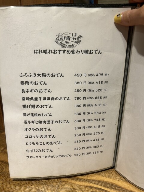横浜にも「おでんと庭先地鶏 はれ晴れ 」さんがあり、横浜は娘と行き娘も大絶賛するほど美味しかったので、川崎東口本店さんへ♡