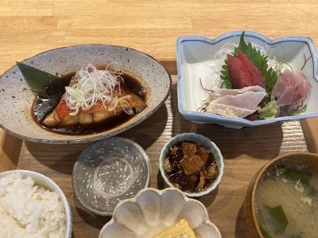 注文したのは、金目鯛の煮付け、刺身定食、そして早川漁港ふるはうす定食。どれも魚が新鮮で、ボリュームもたっぷり。特に金目鯛はしっかり味がしみていて、ご飯が進むおいしさでした。