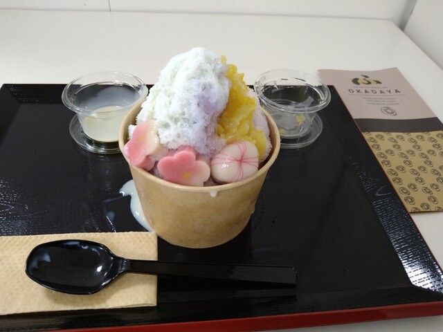 生麩かき氷 抹茶あずき、生麩まんじゅう、麩の菓子(ごま黒糖、メープルバター)、コロリエ(いちご、クランベリー)