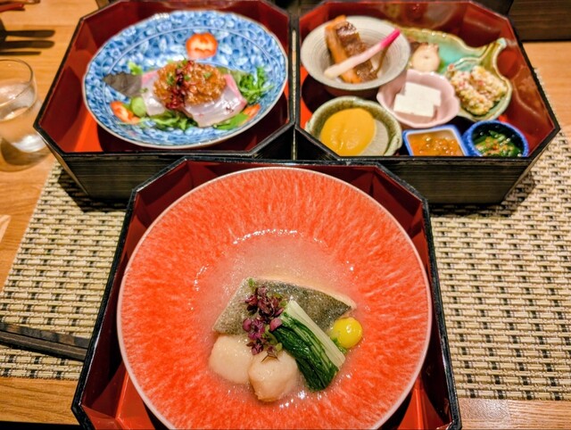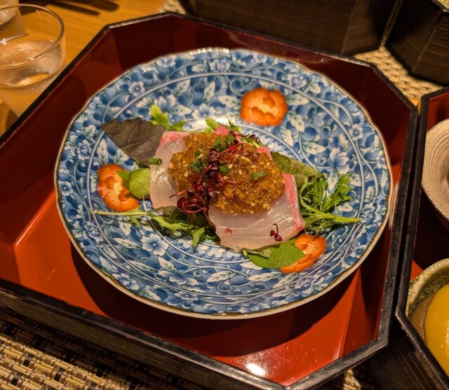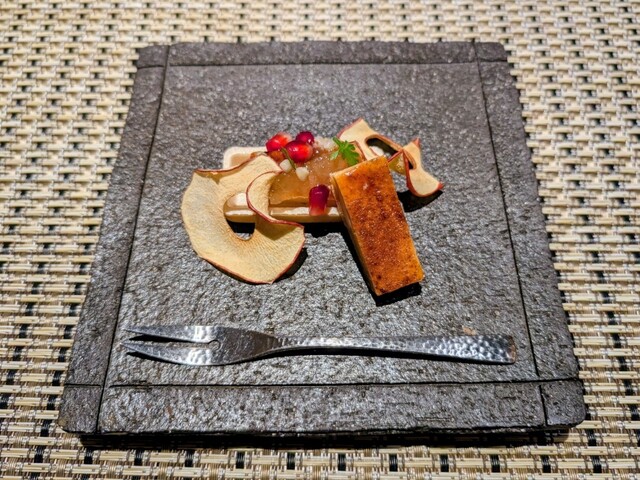 印象に残ったのはスズキフライの新ごぼう餡とタルタル、アスパラとトリュフの茶碗蒸し