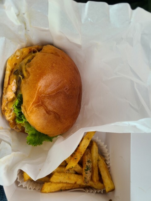 ストレートバーガーをBセットで注文しました。他のバーガーに比べるとシンプルですが、かぶりつくとググググッと肉の旨みと、ピクルスの想像以上のジューシーさが混ざり合って最高においしい!辛口ジンジャエールも...