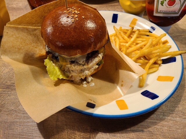 今年も最後に本格バーガーが食べたくなっのでお邪魔しました。パインチーズミックスバーガーとBセット。運ばれてきだバーガーを横から見ると大きくて美しい!かぶりついたときの肉汁やソースやなんやかんやでテンシ...
