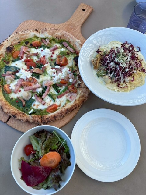 ワンコと一緒にお出かけがしたい!と言う娘が、Instagramで見つけたようです。ペーパー的な運転でも車で行けそうなところをチョイス笑。道に迷いながらも到着。来てよかった。芽キャベツとホタテのクリーム...