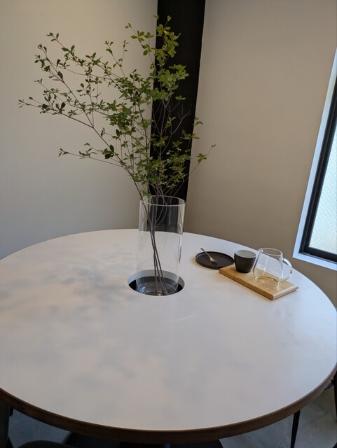 住宅街の静かな通りにひっそりと佇む、洗練された小さなカフェ。店内はスタイリッシュでありながらどこか温もりがあり、休日には家族連れの姿も自然と馴染む。落ち着いたBGMとゆったりした時間の流れが、慌ただしい日常をそっとゆるめてくれる。