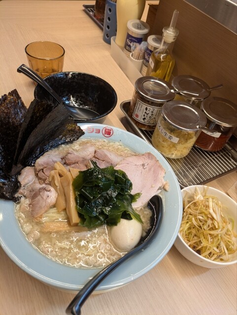 卓上には基本調味料も揃っており、味変の余地が広いのもラーショ系らしい魅力。