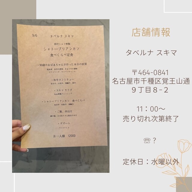 最新の情報とは異なる可能性がありますので、お店の方にご確認ください。詳しくはこちら