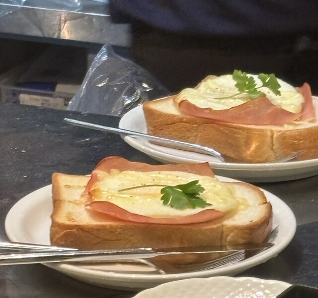 • ハムエッグ・トースト:分厚いトーストに、とろけるチーズと半熟の目玉焼きが乗った、王道のボリュームメニュー。朝からしっかりエネルギーチャージできます(写真あり)。
