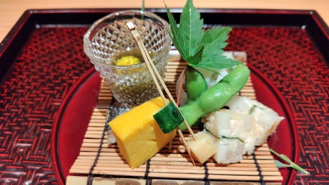 煎餅の衣をまとった海老揚げが好きだったな。柑橘系の香りのする鯛のお吸い物も、熱々の鰆の焼き物も、好みでした。