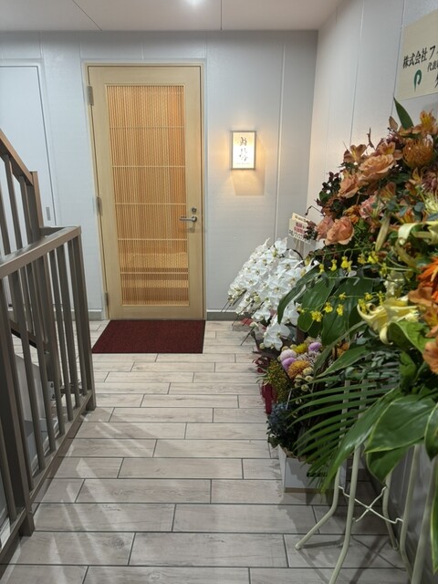 開店したばかりお店の前には、花輪がたくさん飾られていました