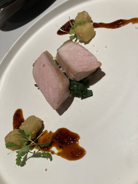 - 味の方向性はフュージョンというより、和洋中の技法を用いた二本柱の構成。