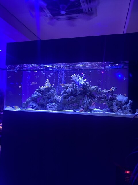 お店に入ってまず驚くのが、地域最大級を誇る巨大な海水魚水槽。