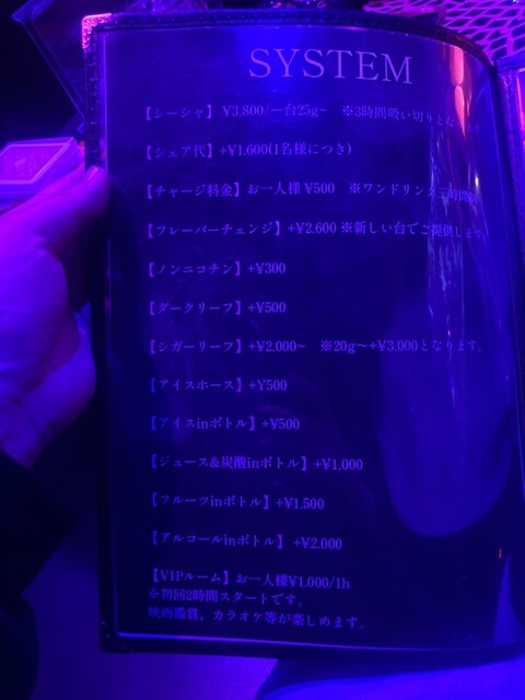 ウェルカムシーシャと注文したシーシャの二つを味わうことができるので金額はかなりリーズナブルだと思います。
