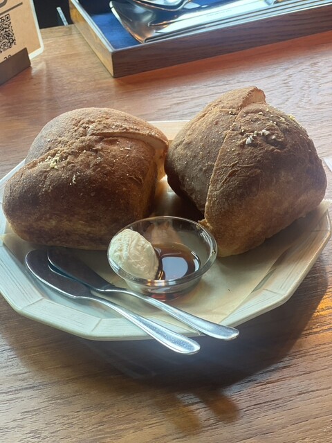 芳醇なトリュフの香りが鼻を抜け、添えられた「マスカルポーネ&メープルのホイップバター」をつけると、甘じょっぱさがクセになって手が止まりません…!