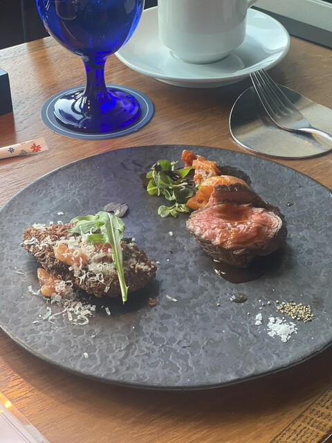 「淡路牛ビステッカ」は旨みが凝縮されていて、「サーモングリル」はセサミの香ばしさとバルサミコソースの酸味が絶妙なバランスでした。