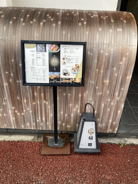 住吉の路地裏に佇む、洗練された外観の『焼鳥 稲田』。