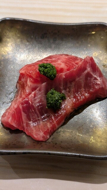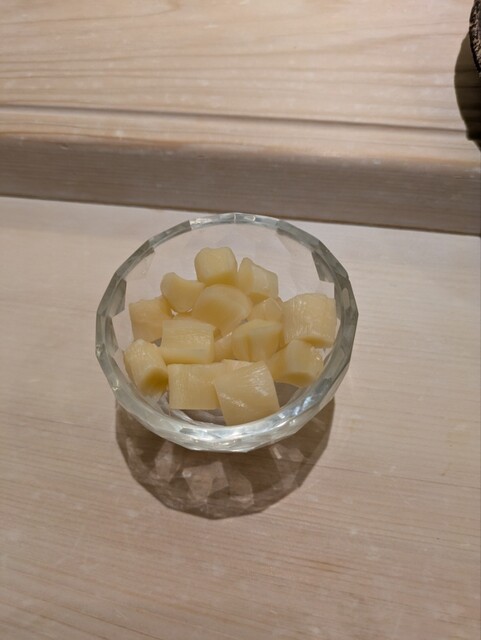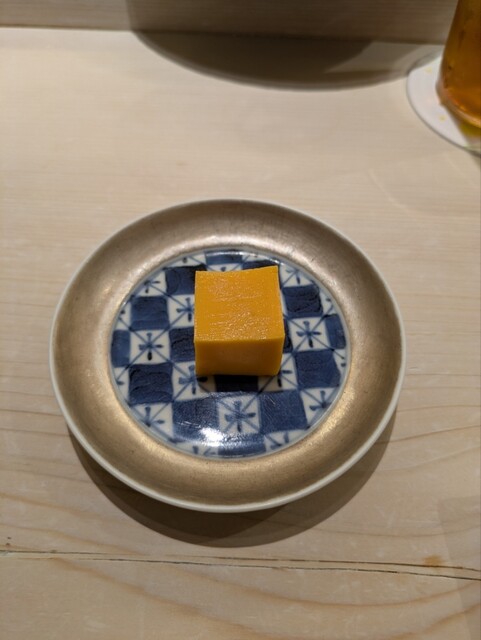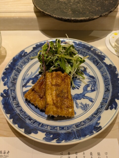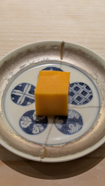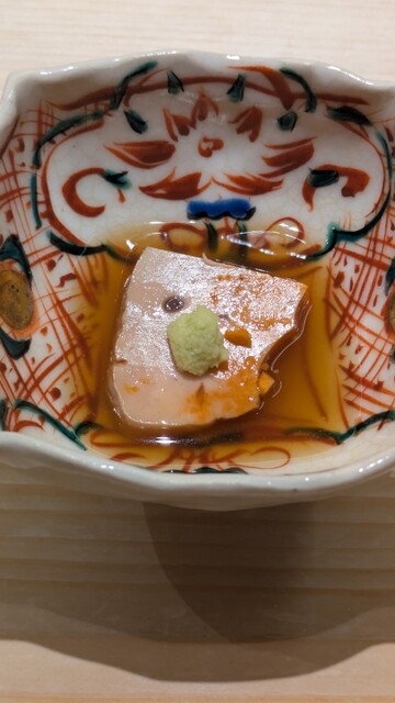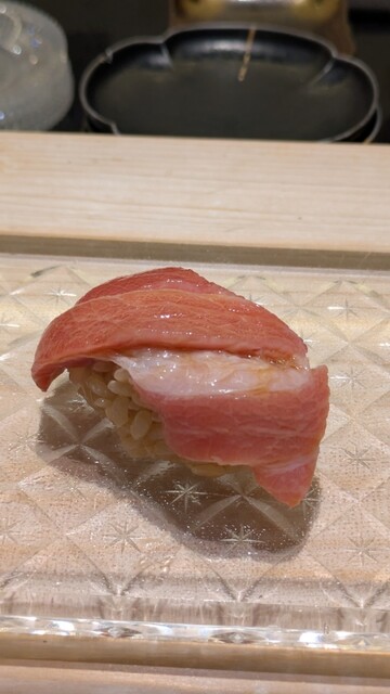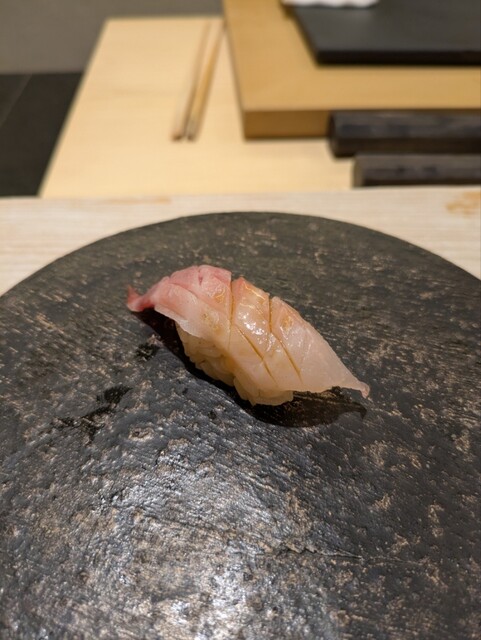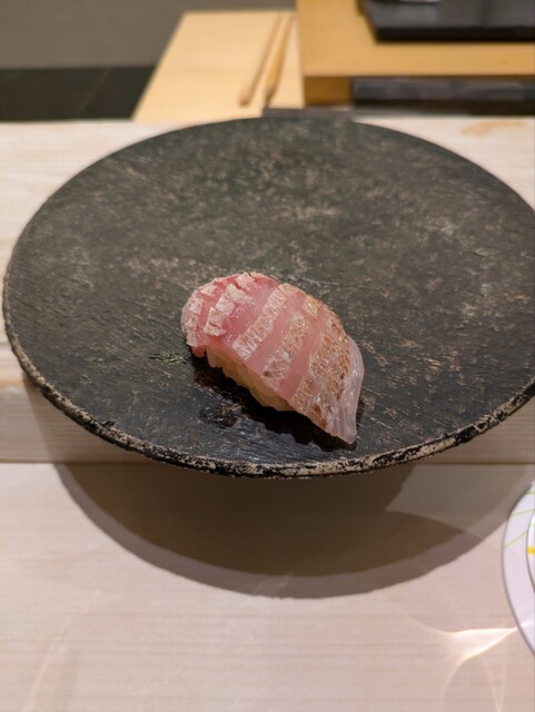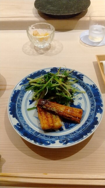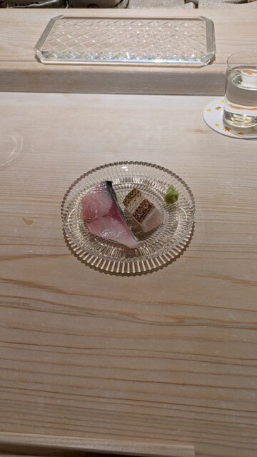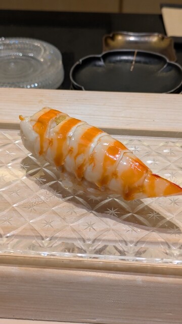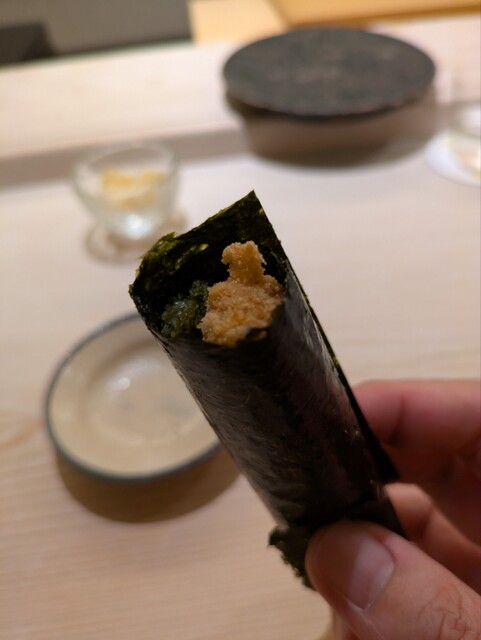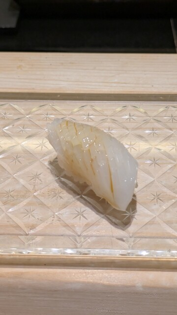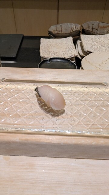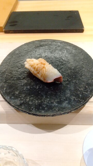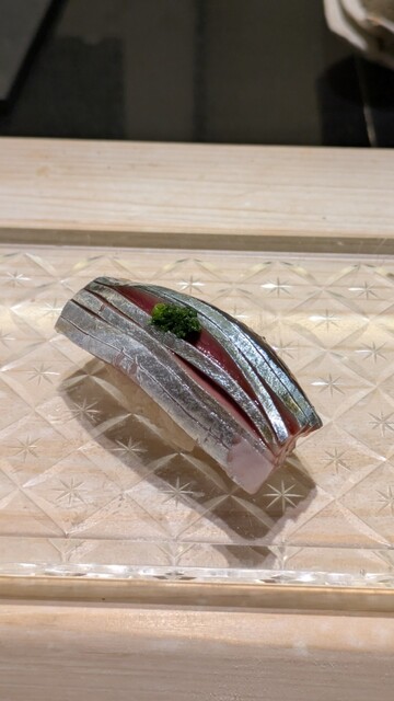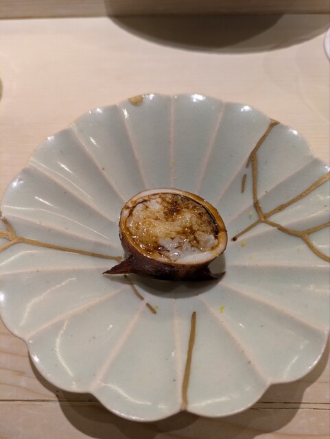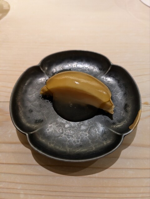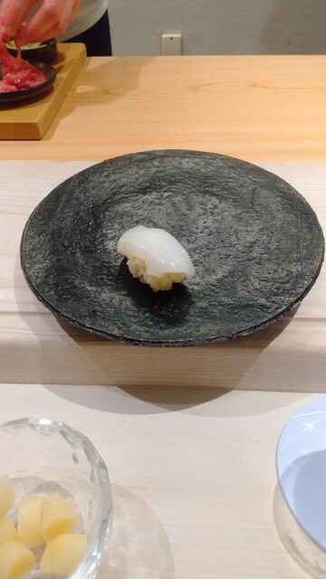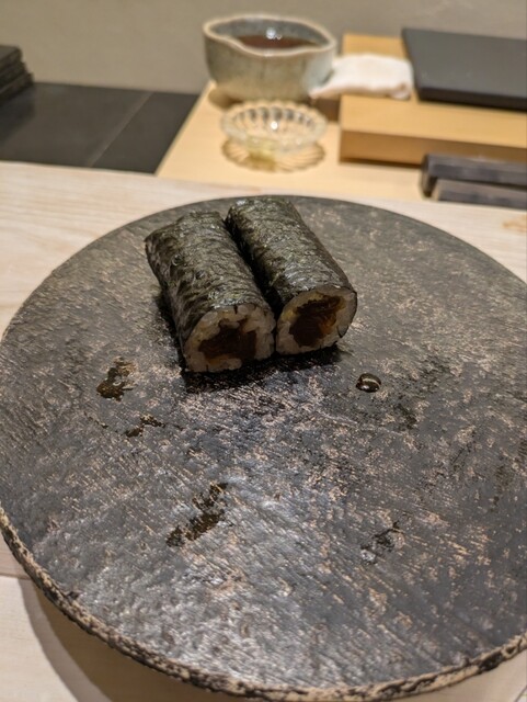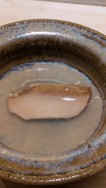 今回特に印象的だったのは生臭さが全くない生鯖と皮目を炙って香ばしさのついた笛鯛のお造り、いつもながら甘みの効いた出汁とキンキの脂が胃に染み渡るキンキの煮付け、海老の甘さ、みそと卵の旨味、殻の香ばしさが渾然一体となった牡丹海老の一皿、炭火?で焼かれた茄子の香ばしさが心地よく口に広がる焼き茄子の摺り流し、香ばしく焼かれた鰻と野菜が口の中で上手く調和する鰻の白焼き、帆立の出汁で炊かれた舎利の香ばしさと帆立の身の甘さが新しい味を作り出していた焼き寿司、薬味が魚の身の旨味を引き立てて思わず声が出るほどだった秋刀魚と鰯、焼かれた皮目の香りと塩が身の旨味を引き立てていた鰹、温度調整のおかげでとろける食感が最大限引き出された大トロ、崩れる程柔らかく煮上げられた穴子と甘めのツメを柚子の香りが引き締めてくれた穴子などでした(*´ω`*)