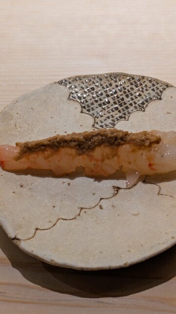 牡丹海老~味噌と殻と卵のペーストを添えて