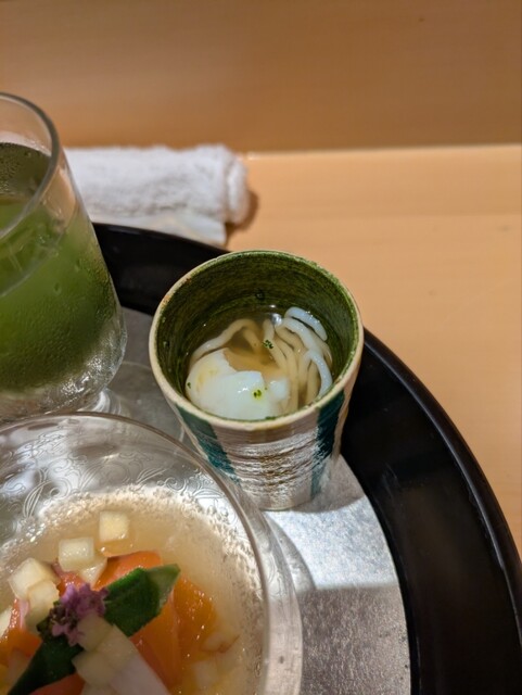 今度私の地元に来られるという店員さんと地元の料理店の話で盛り上がりつつ、八寸の際はいつも通り大将から四季に関する貴重なお話をいただきながら、ちょっとしたトラブルがありつつも臨機応変に対処していた大将や店員の姿にも感銘を受けつつ、本当に充実した時間を過ごさせて頂きました。