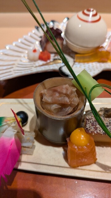 大将からは氷柱を立てた八寸をいただく前に伝統的なお話をいただき、照明を暗くするなどの演出も単なる食事の時間の域を超えた素晴らしい体験をさせて頂きました(*´∀`*)