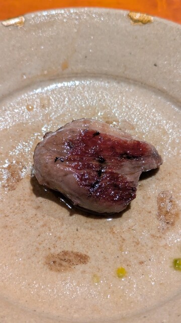 玉鋼で焼き上げる古の調理法にこんなところで出会えるとは···味も勿論絶品で、柔らかい鴨肉からジューシな肉汁が溢れ出てきました。