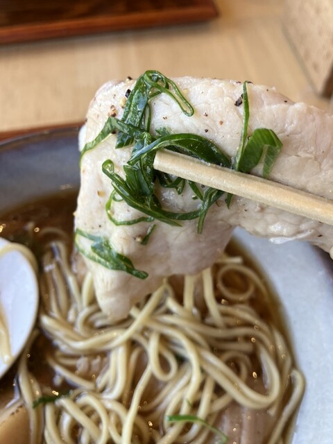 チャーシューは レア気味の豚チャーシューが2枚 と、皮目が香ばしい 鶏チャーシュー が入っていて、どっちも丁寧で上品な味わい( 'ч'♡ )