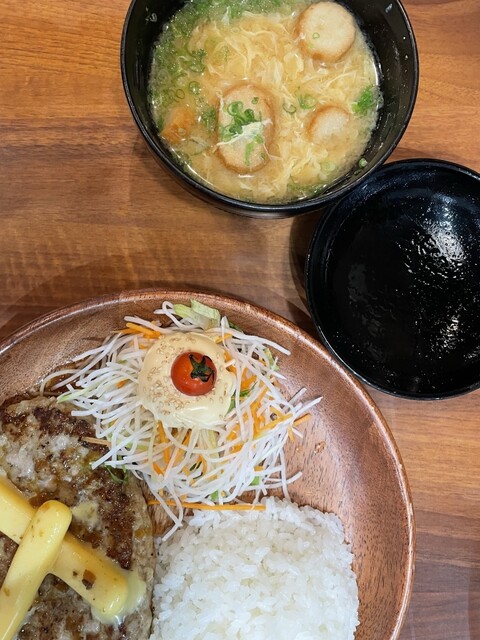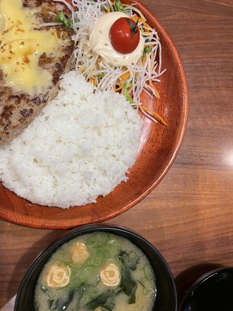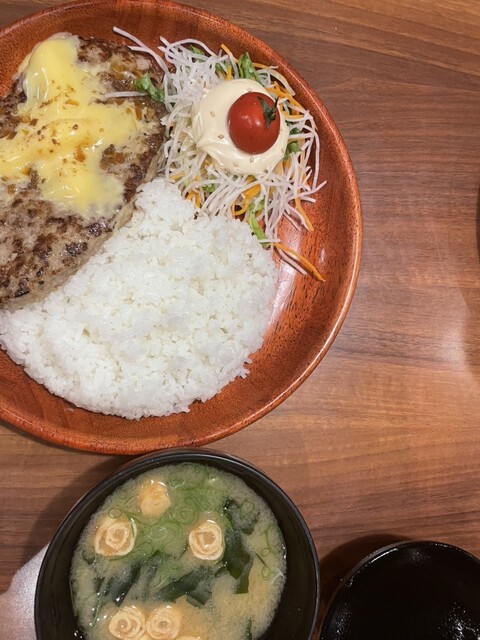 美味かった。今日は特別な日で少し贅沢しました。チーズデニッシュハンバーグLでライス大盛りそして味噌汁をつけました。やっと食べ切りましたが満足感半端ありません。美味しいモノを腹一杯食べれるのはホント幸せですね