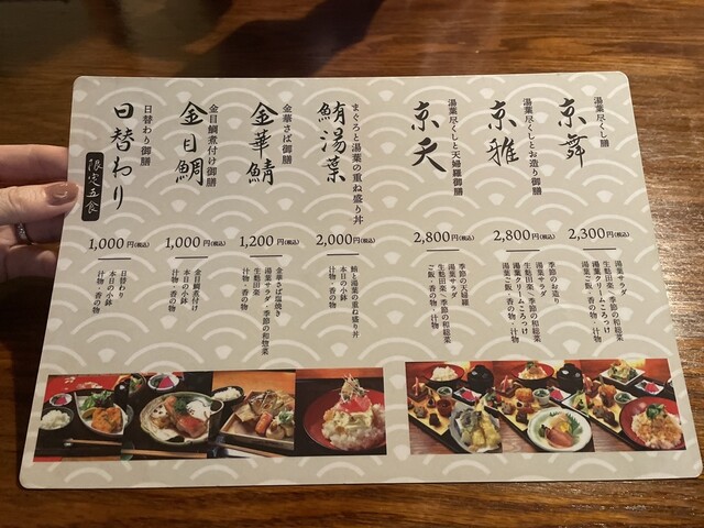 私はランチタイムに伺い、湯葉尽くしとお造り膳をいただきましたが、お刺身は新鮮でしたし