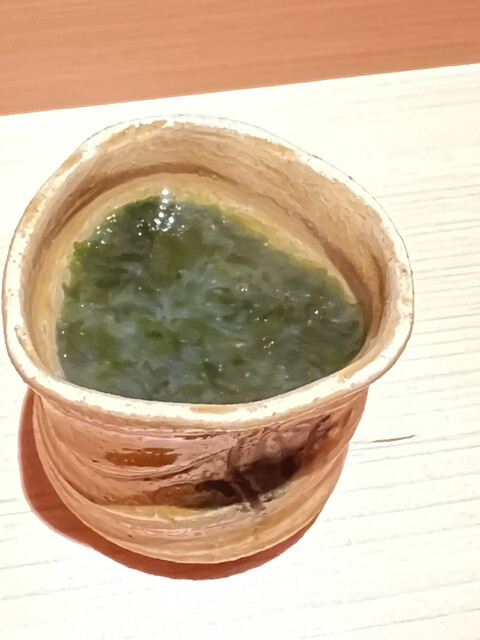 甘い青海苔お出汁の下に絶品あさりの茶碗蒸し