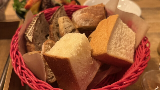 お任せのオードブル皿も、パテにレバーに砂肝と、無料のパンをモリモリ食わせようとしているとしか思えない。