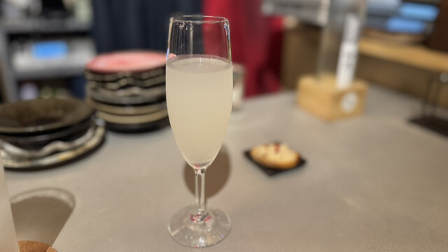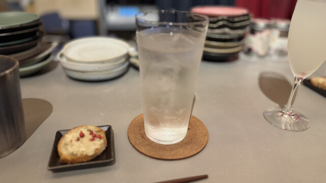 チェイサーとして出されるのは、なんと山水。飲む前から気分が上がります。日本酒は銘柄一覧がない代わりに、料理に合わせて口頭で提案してくれるスタイル。ラベルも洒落たものが多く、酒好きにはうれしい趣向です。スパークリングや焼酎ベースのハイボールも揃い、幅広く楽しめます。奥球磨のハイボールはスモーキーでかなり好きだった。
