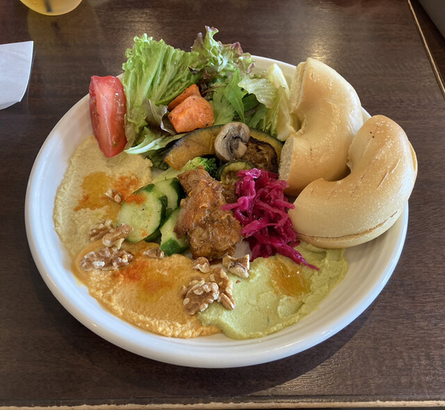 ランチ1430円でプレーンベーグル食べ放題で選べるドリンクが付いてました。