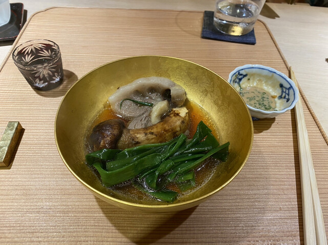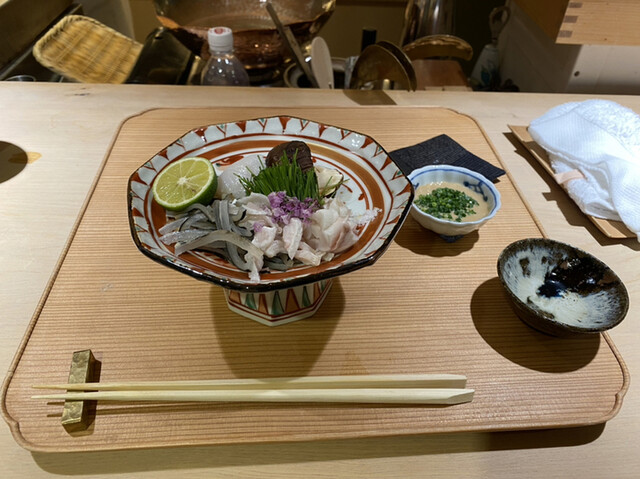 季節を感じさせる滋味豊かな料理、眼に鮮やかな彩りの器の数々、小ぢんまりとして居心地の良い店構え、穏やかで素朴な人柄と料理人としての腕は勿論、料理に合わせる酒を選ぶソムリエとしての大将の舌には"信頼"以外に選ぶ言葉無し。