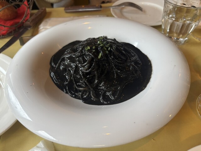 気になってたナポリ名物幸せの一皿、イカ墨パスタも、ワインもデザートも全部美味しかったです。