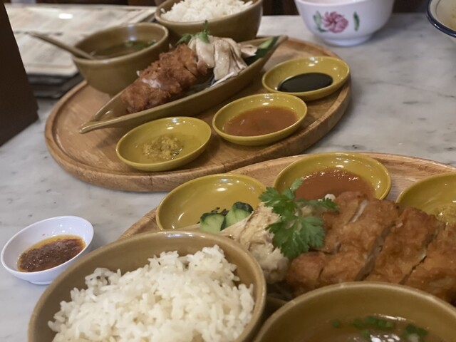 カオマンガイの蒸しと揚げのハーフ&ハーフ