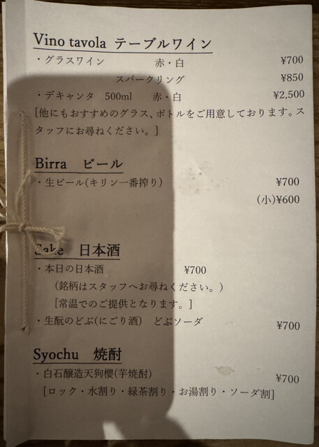 ドリンクメニュー