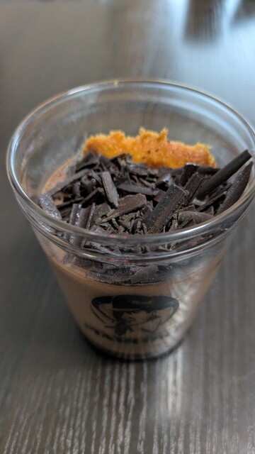 濃厚なチョコの味わい。プリンだけど、プリンぽくないボリューム感です。中に隠れたフィナンシェも美味。上に乗った削りチョコも甘すぎず。