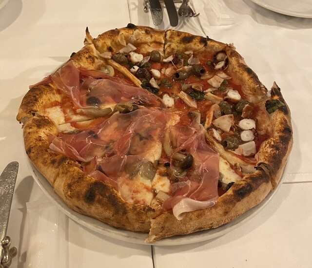4人で、各自前菜➕ピザ3枚!(ハーフアンドハーフにしたから計6種類食べられた!!)➕デザート!