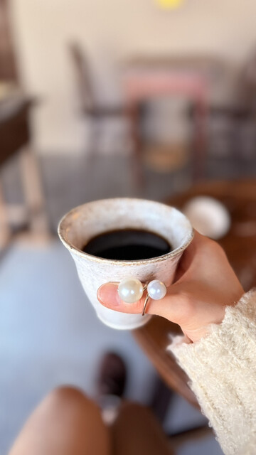 ドリンクの器は作家さんのもので、私の頼んだコーヒーは蓋が猫ちゃん付きで可愛かった‼︎⬛