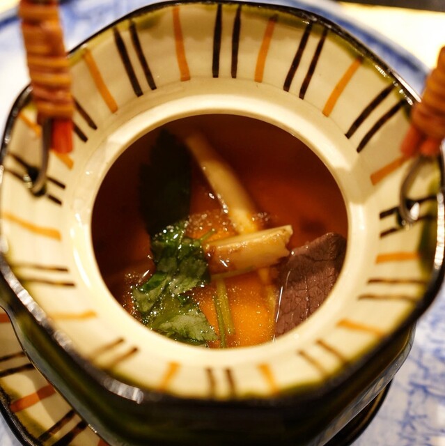 まずは松茸と和牛の土瓶蒸しからスタート。