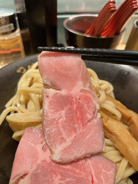濃厚なつけ汁は豚のコクと甘みが口の中に広がる。この甘みが下に残り幸せになる。魚介の旨みもしっかりと入っているので豚の癖もしっかり中和されている。