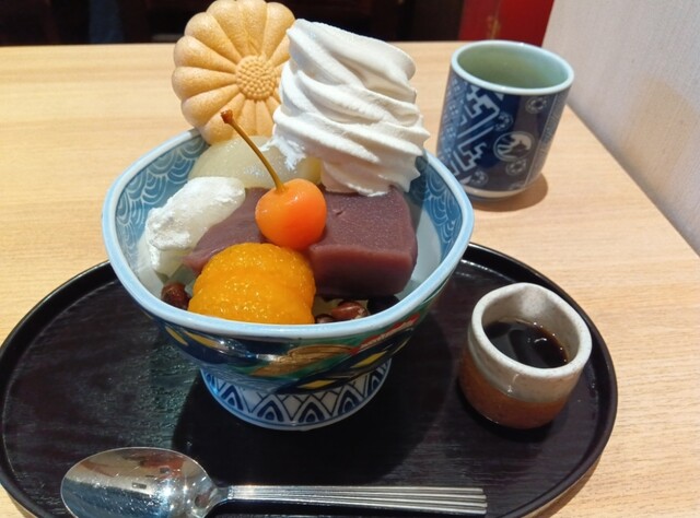 クーポンでソフトクリームがサービスということで、あんみつ720円を注文