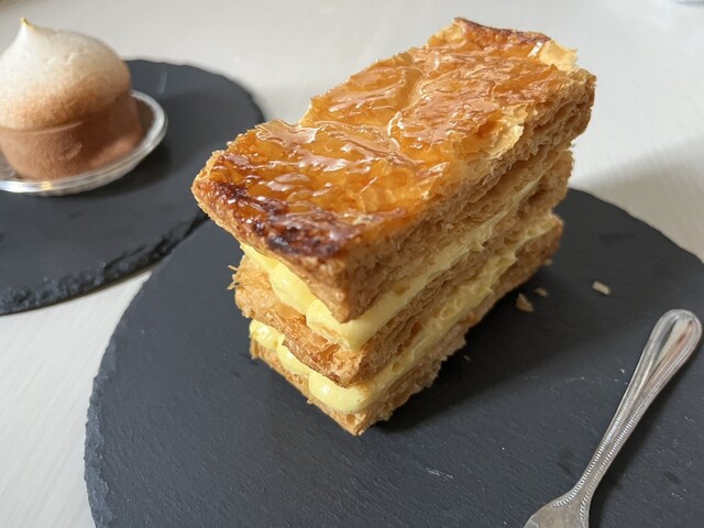 (香ばしく焼き上げたパイ生地にヴァニラビーンズをたっぷりと使用したクリームをサンドしました)