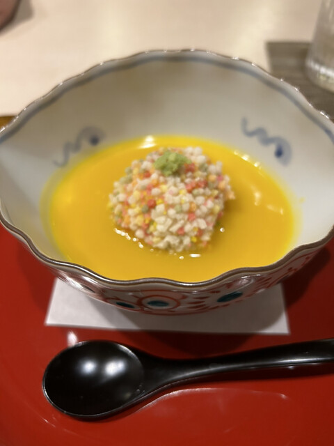 特に変わっていて美味しかったのが写真右の、果物の白和え。柿といちじくとシャインマスカットでした。